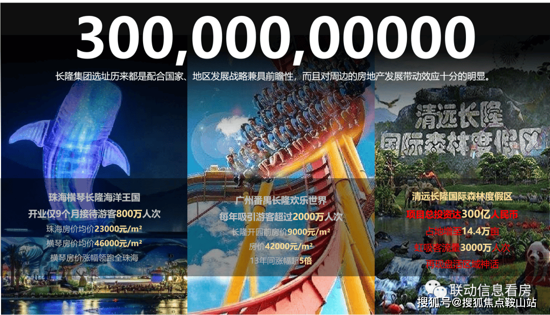 全国第三个长隆从题乐土,占地14。4万亩,总投资300亿;是15个番禺长隆的大小,有三个澳门大,设想年客流量3000万人次,创制5万就业岗亭 ,估计带动周边30万相关就业生齿。